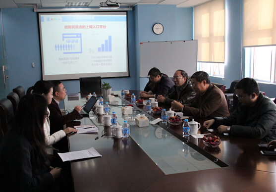 韓猛就公司產(chǎn)品、盈利模式、合作伙伴及未來三年規(guī)劃等做了詳細介紹,并與客人探討了我公司pc端和移動端產(chǎn)品的發(fā)展方向。