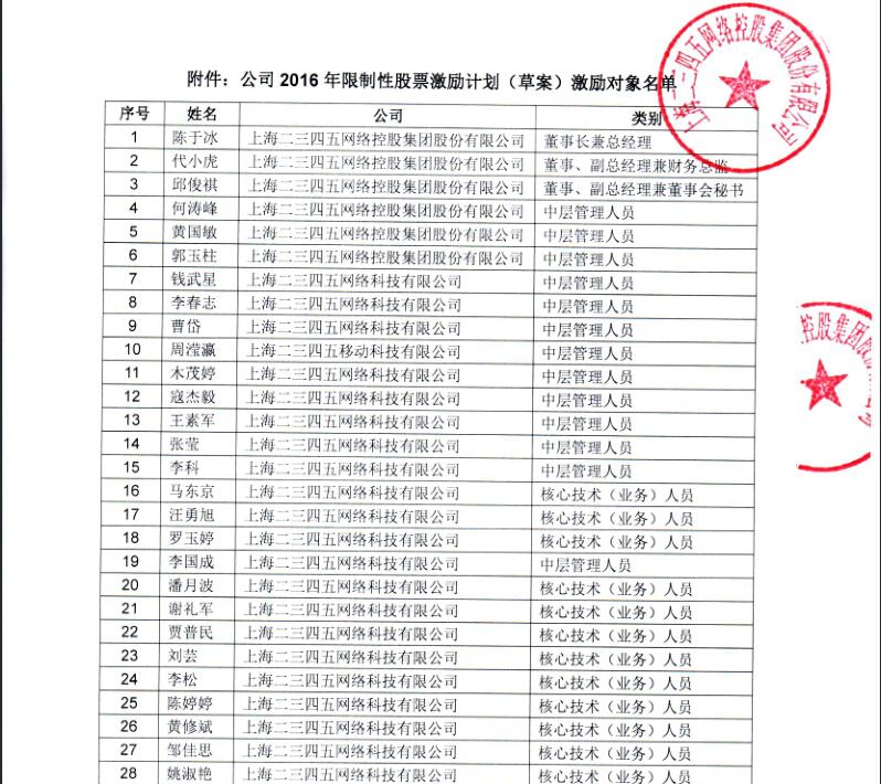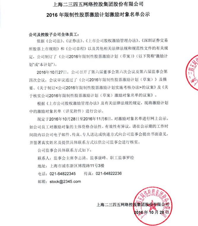 2016年限制性股票激勵(lì)計(jì)劃激勵(lì)對(duì)象名單公示的通知