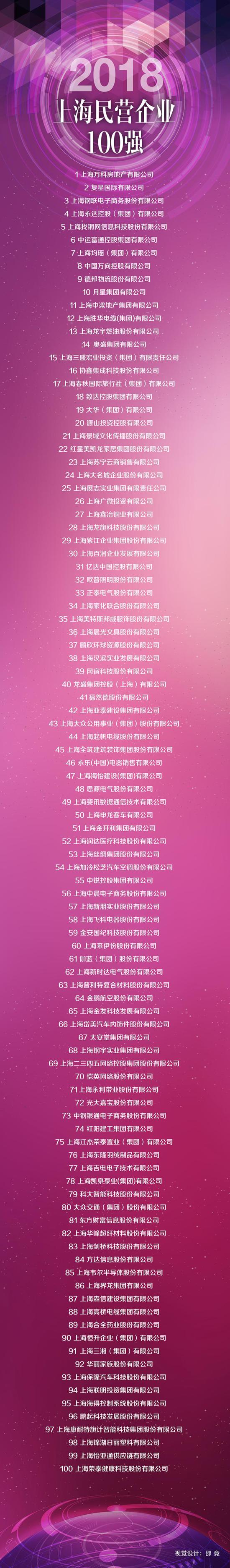 8月24日,上海市企業(yè)聯(lián)合會、上海市企業(yè)家協(xié)會、上海市經(jīng)濟(jì)團(tuán)體聯(lián)合會聯(lián)合發(fā)布2018上海百強(qiáng)企業(yè)榜單,上海二三四五網(wǎng)絡(luò)控股集團(tuán)股份有限公司(簡稱“二三四五”,股票代碼002195)再次入選。