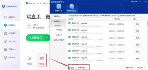 第一步:請先全選并清空安全衛士的病毒查殺信任區